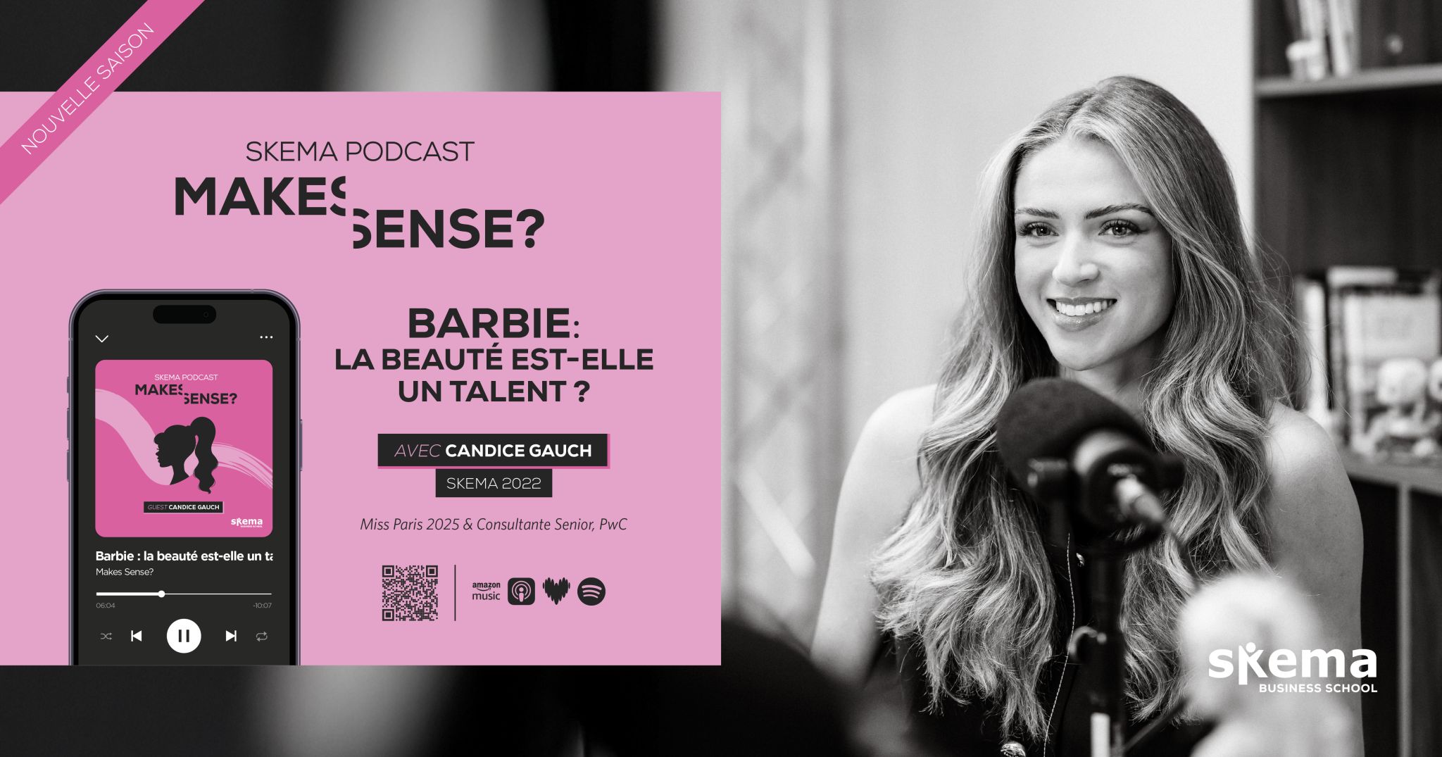 For its 20ᵉ episode, "MAKES SENSE?" welcomes Candice Gauch, consultant at PwC, graduate of the Master in Management (PGE) and MSc International Strategy & Influence. In this episode entitled "Barbie: is beauty a talent?" Candice our alumna AND Miss Paris 2025, questions representations of beauty, their influence in society and their link with self-confidence, performance and professional success.